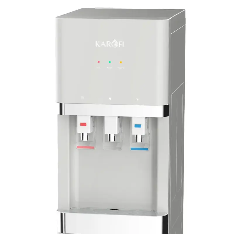 Cây nước nóng lạnh hút bình Karofi HCV208G sở hữu 3 vòi lấy nước riêng biệt, tương ứng với ba chế độ nóng – lạnh – nguội. Mỗi vòi được trang bị đèn LED với màu sắc riêng biệt, giúp người dùng dễ dàng nhận biết và sử dụng chính xác chế độ mình cần. Đặc biệt, bạn có thể lấy đồng thời cả 3 chế độ nước, đáp ứng linh hoạt nhu cầu sử dụng của nhiều thành viên trong gia đình cùng lúc.