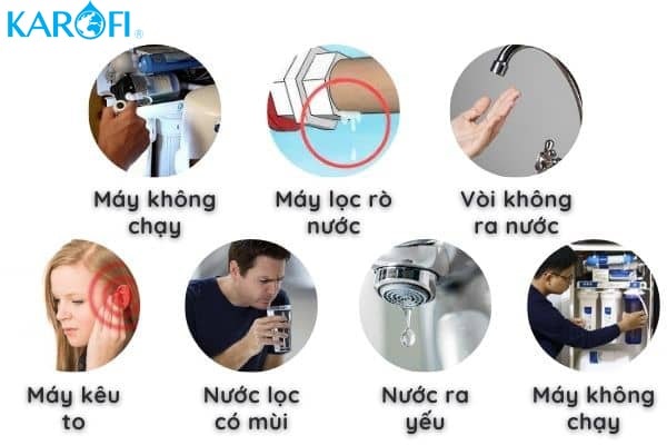 - Máy phát ra tiếng kêu lạ (tạch tạch, tít tít): Tiếng ồn bất thường thường do máy bơm phải hoạt động quá công suất để đẩy nước qua các lõi lọc bị tắc.