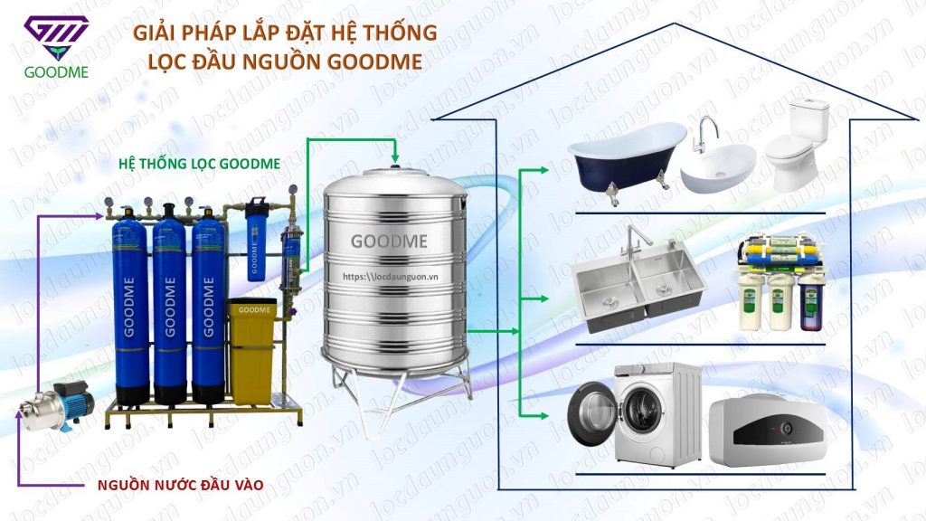 Hệ thống lọc nước sinh hoạt Goodme là giải pháp hiệu quả giúp bạn cải thiện tốt nhất chất lượng nước sinh hoạt cho gia đình bạn. Hệ thống sử dụng các vật liệu lọc ngoại nhập với tỉ lệ phù hợp cho ra chất lượng nước hoàn toàn trong sạch và độ ổn định cao