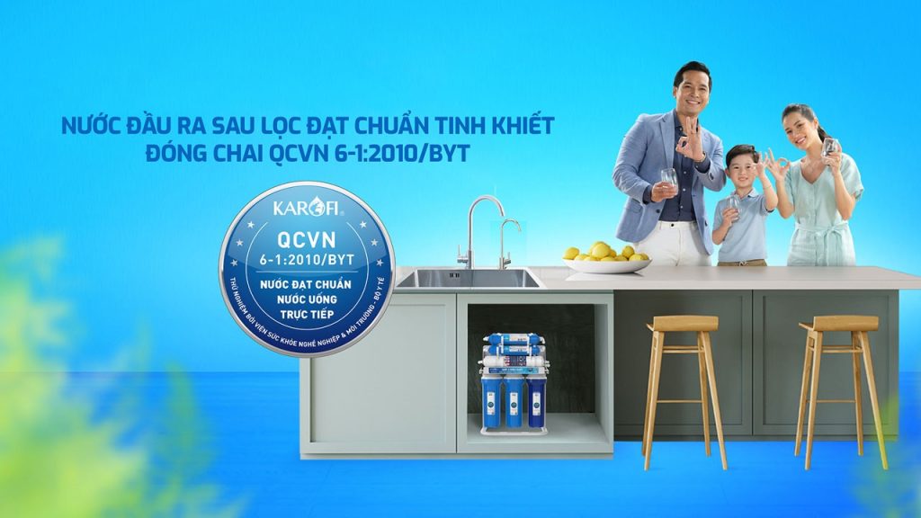 Nguồn nước sau lọc từ Máy lọc nước Karofi KHY-TN100 đạt chuẩn nước uống tinh khiết đóng chai QCVN 6-1:2010 BYT do Viện Sức khỏe nghề nghiệp & Môi trường – Bộ Y Tế công nhận.